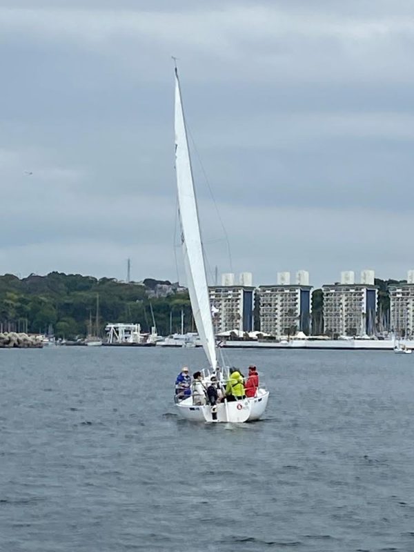 アランさんをスキッパー、トリマーを飯塚さん、メインシートを大塚が担当し、秋山さん、安西さん、中尾さん指導の下みっちりと練習を行った。