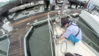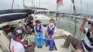 3回目となるど新人のブラインド大島さん、金子のために設けていただいた練習日は、残念ながら雨降りとこの荒天続きによる大量のゴミ、流木、魚の死体に阻まれ、マリーナから出てすぐに引き返し、桟橋に寄せる練習や、ルミナス乗船時の想定タック練習などを終えてクローズとなりました。