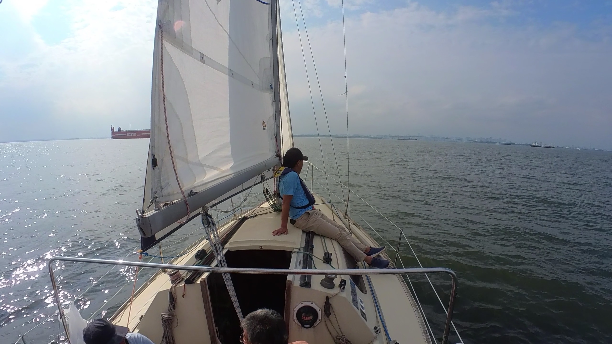 風が4メートル前後と、初心者練習には最適。回頭しすぎてワイルドジャイブとなっても影響とリスクも低い。さらに、メインセールトリマーは、最初に、ブームケアのために高速でメインを引き込むことを学習。