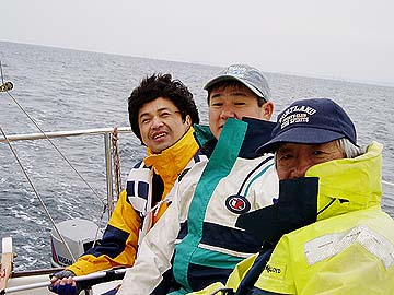 坂本さんは、お若い頃からディンギー(主にファイアーボール)に乗られていたそうです。現在も21フィートのクルーザーを所有し、お仲間と乗っているそうですが、10年程前に視覚障害が判明してからはヘルムを持った事がなく、視覚障害者がどのようにヘルムを操作するのか知りたい。という事で、奥様とご一緒に今回初めて参加されました。那須さんは、浦安のタートルのクルーで、竹内さんのお知り合いです。JBSAの活動に協力したい。という事で、やはり今回が初参加です。