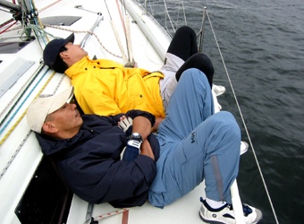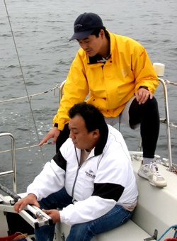 「ちこ2」には、今回マイランケさん、お友達のドイツ人の方が2人と、久しぶりに参加の戸塚さんが乗船し、日独交流の場となった模様。