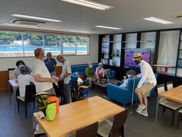 今回のクルーズは体験乗船の高橋さん、久しぶりに参加された菊池さんを迎え、ブラインド5人と大盛況。ブラインドが多いため、今回もブラインドを午前と、午後の2回に分けて活動を行いました。