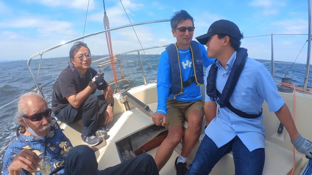 谷下田さんと一緒にいたおかげでこの日はVIP待遇!優雅なクルージングのスタート!と思ったら、最初に待っていたのは前回台風対策で外したジブセールを取り付ける作業!