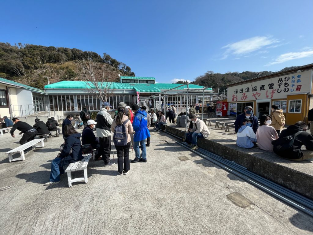 保田での食事は保田の漁協が経営する番屋でとることに。2月という季節にもかかわらず、広い店舗は満席。