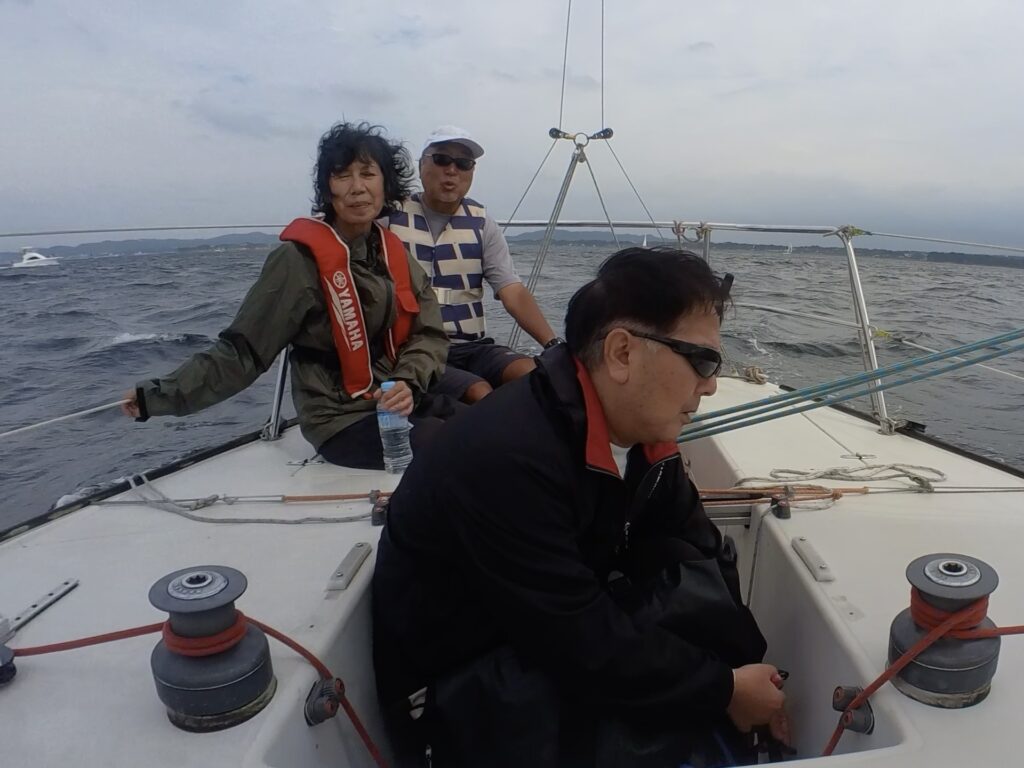 ・メインシート、ジブシート2本は、軽く水洗いしたので、カゴには入れずに、立てた床板に引っ掛けておきました。