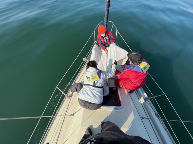 ● 旧メインセールのバテン抜けセール畳んでバウに収納