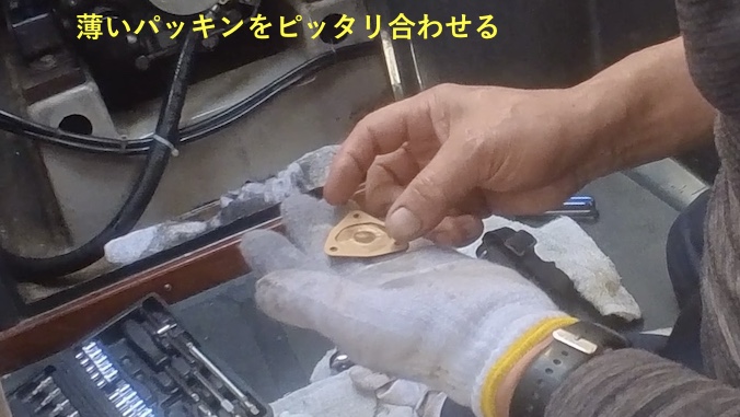 そして、私が今回びっくりしたナンバーワンの作業「ジンクの取り替え」。ジンクとは、防蝕亜鉛でエンジンが電蝕しないようにする部品。形状は、親指ぐらいの太さで、薄い紙のパッキンと金具を挟み、ボルトで締めてから取り付ける。使い続けると、どんどん溶けてしまう。前回いつ交換したか、整備記録がないのでわからないが、角がなくなるくらい溶けていた。「海水から守るために溶ける部品」に感動した。古いジンクさん、今までご苦労さまでした。