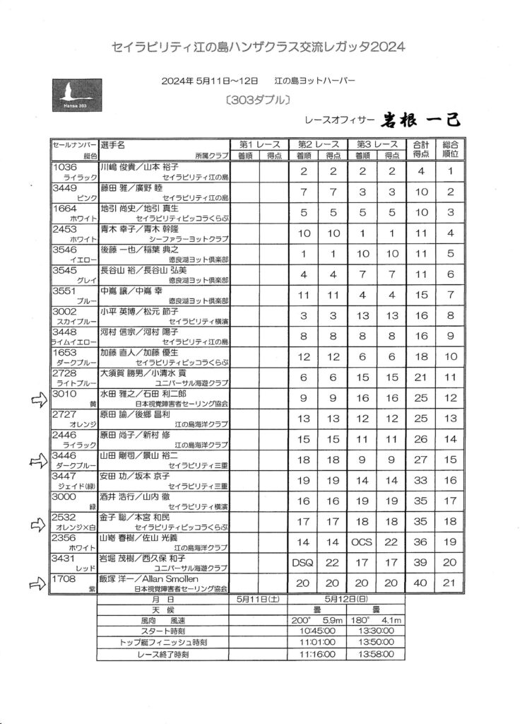 12日は303ダブルクラスは2レース行われました。結果は添付します。