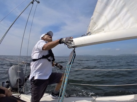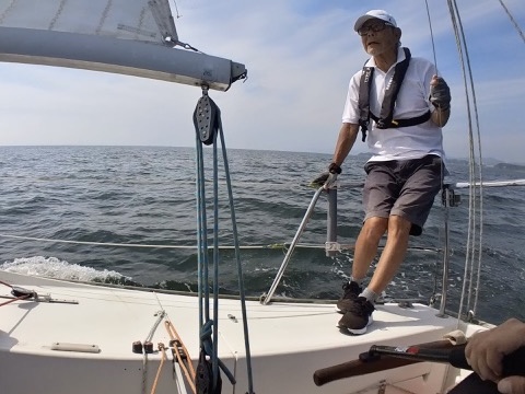 一般的な練習を少々。下マーク回航時のメインセールトリムが問題。