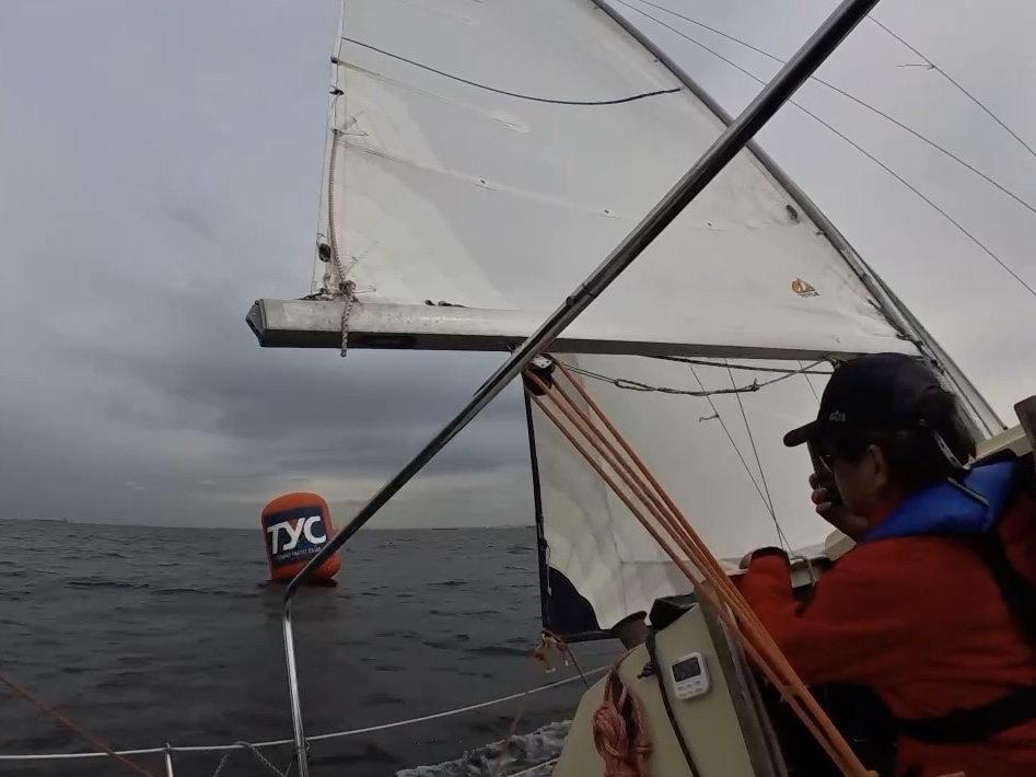 つい数年前までは、ジブセールのタックにしわがはいったらのぼりすぎとかまで見えていたのに、いまや、せまいコックピットで他のクルーのおしりが目の前にあっても、頭の中で映像をつくっていて、遠くに本線がいて、そこを目指している映像が妄想で見えている状態。