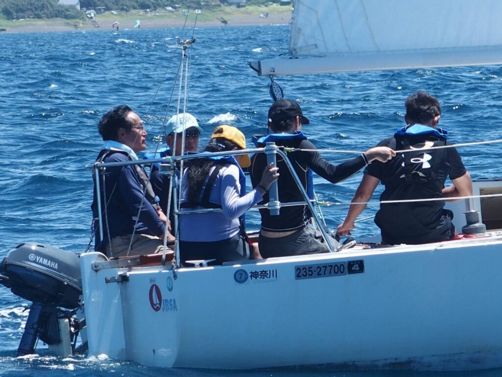 沖で開催しているレースの本部艇に乗船している荒木さんが写真を撮っていただけるとのことで途中近寄りました。よい写真をありがとうございます。