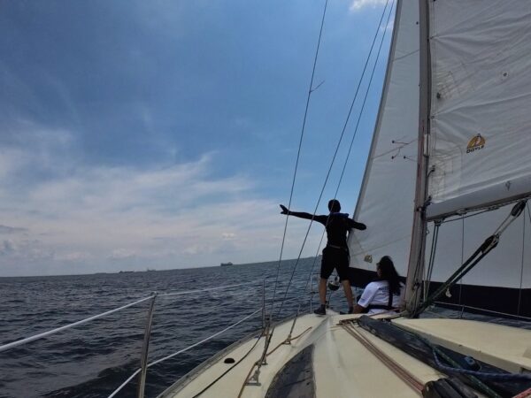 活動のようす: 私にとって、シーボニアマリーナもルミナスも初めての訪問でした。「相模湾はきれいだよ」とは聞いてはいましたが、実際に現地へ足をはこび、肌でその美しさを感じることができました。なによりも三崎口の駅に降り立った瞬間に感じたのは、涼しさです。さらにマリーナに到着すると、その涼しさは一層際立ちました。内陸の甲府とはまったく異なる風。海を三方に囲まれていると、これほどまでに涼しく爽やかに感じるものなのかと驚きました。そして、すばらしい船とずばらしい海。すばらしい空気と風。全体を包み込んでくれる雰囲気 波を切る音も蝉時雨さえもとても振戦に感じました。