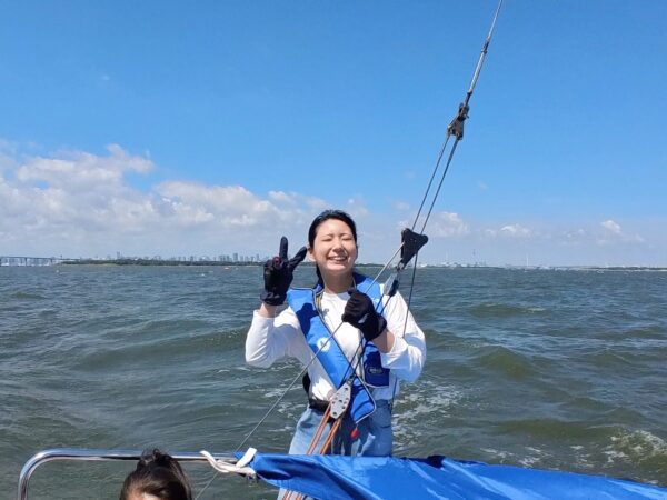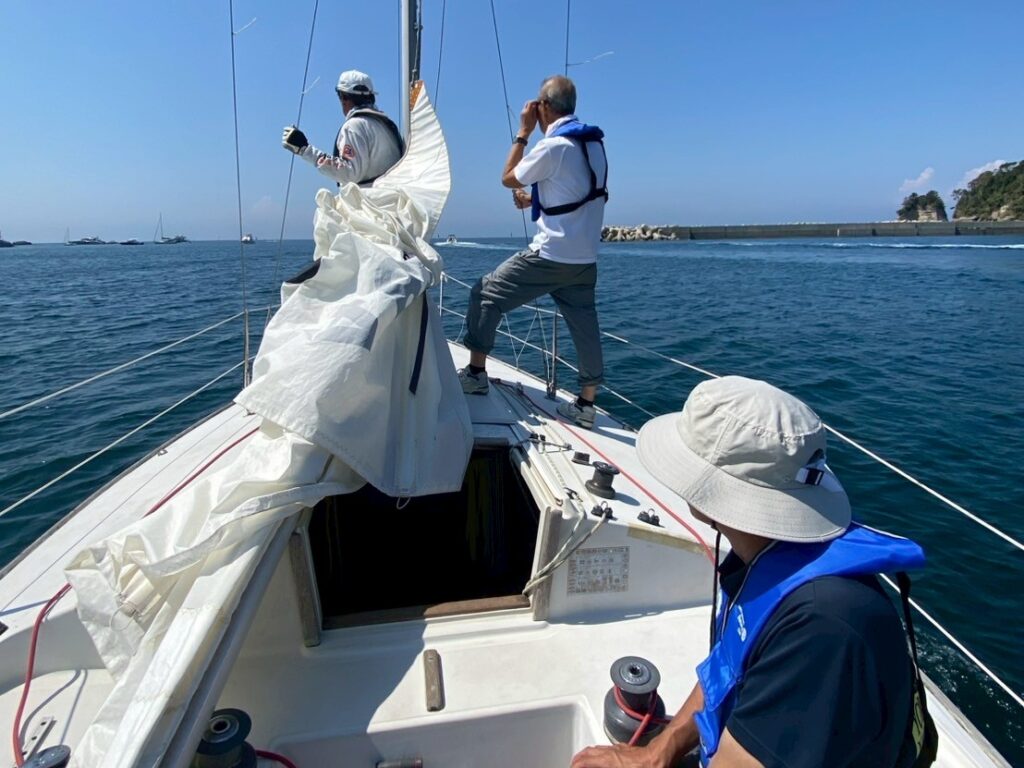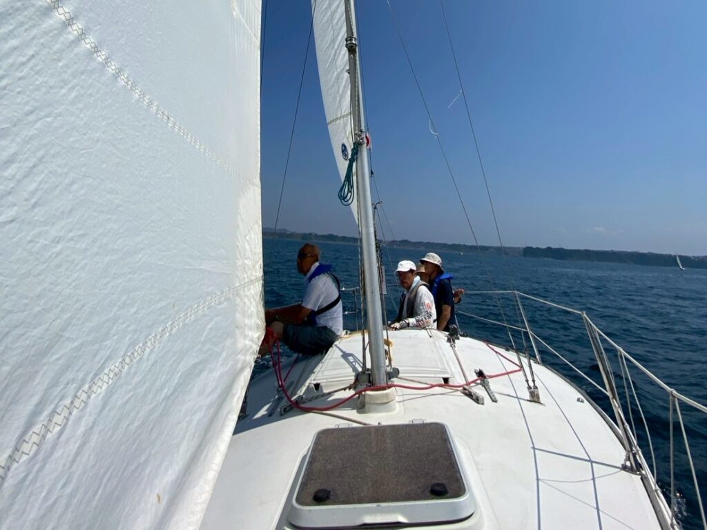 以前会員だった金輪さんを誘ってルミナスを体験して頂いた。所有艇のインアワタイムは三宅さんが75才になる来年まで所有予定との事。金輪さんの復活を要請したが、明確なご返事は得られなかった。カワハギシーズンになったらインアワタイムで釣りをする事になった。風は5,6mでセーリングには最高だった。