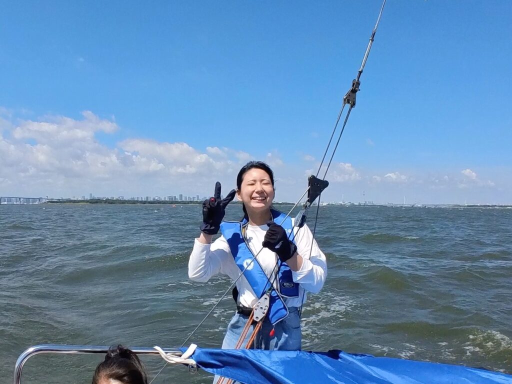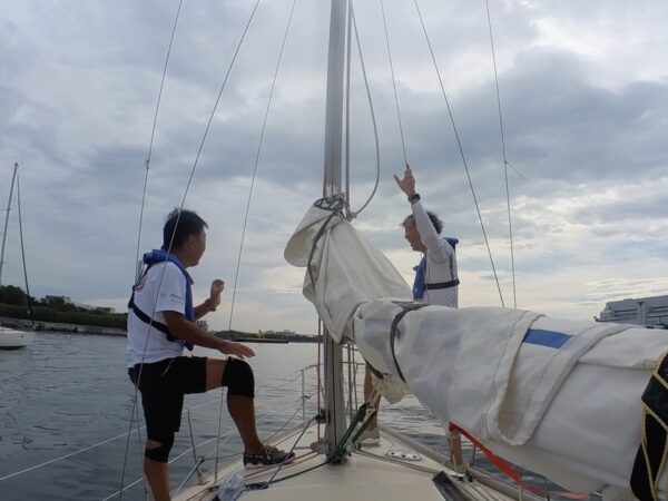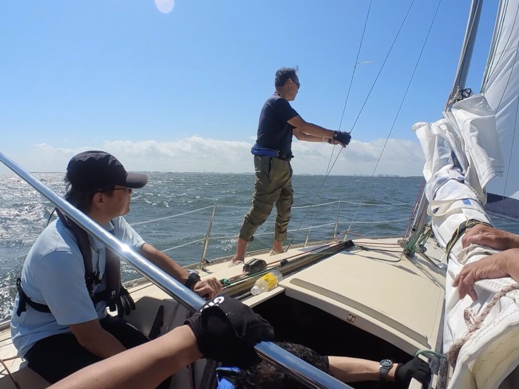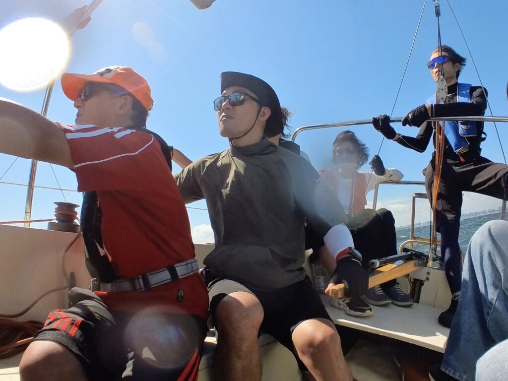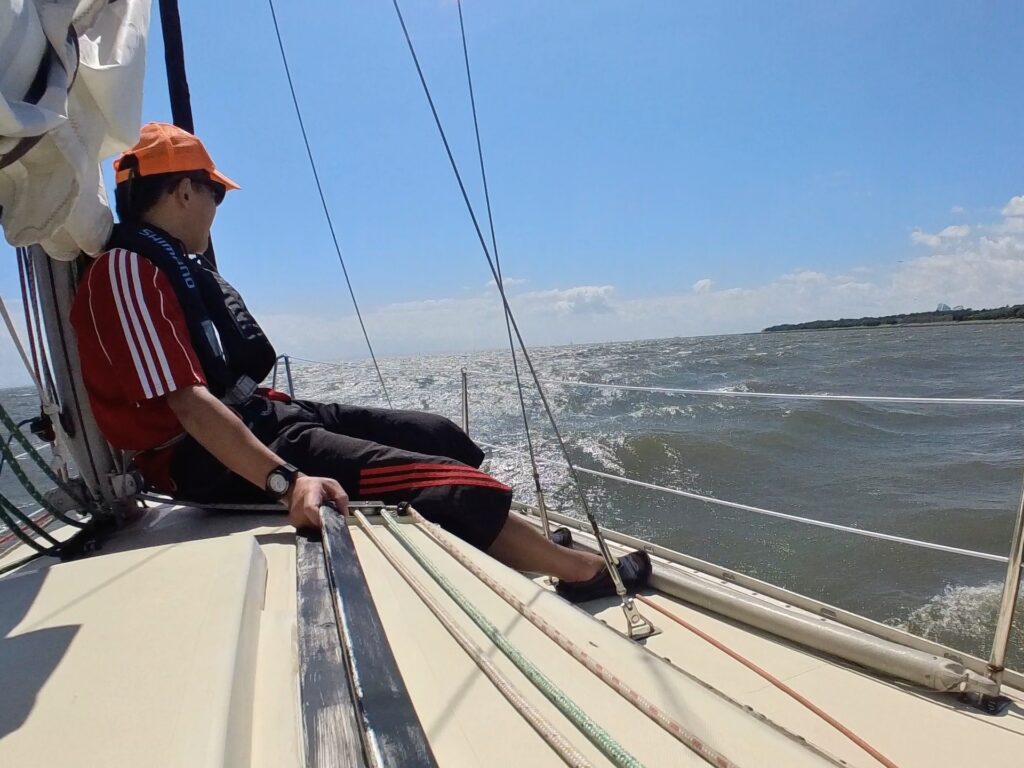初めてフィラーの操作をさせてもらう。進行方向と風の向き・帆の状況に気を配りながらのフィラー操作は、見た目よりはるかに難しかった。これがヨットの醍醐味の一つと改めて感じる。