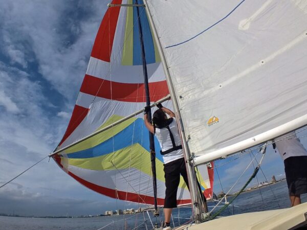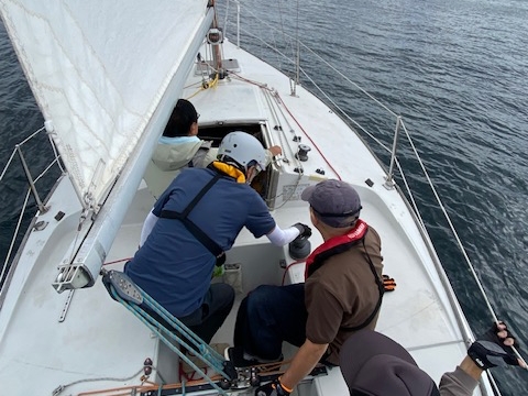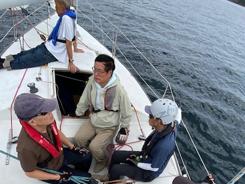 早飯でマリーナに戻り、再度出港すると、徐々に風が上がって絶好のセーリング練習日和、