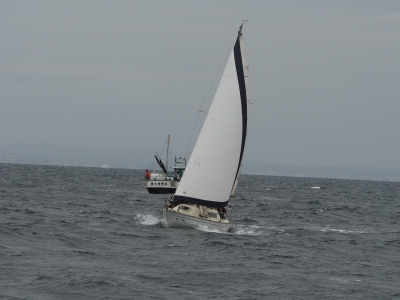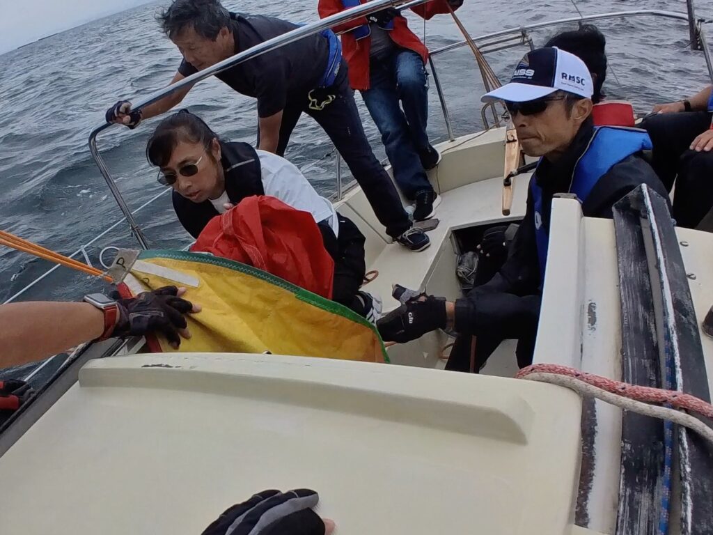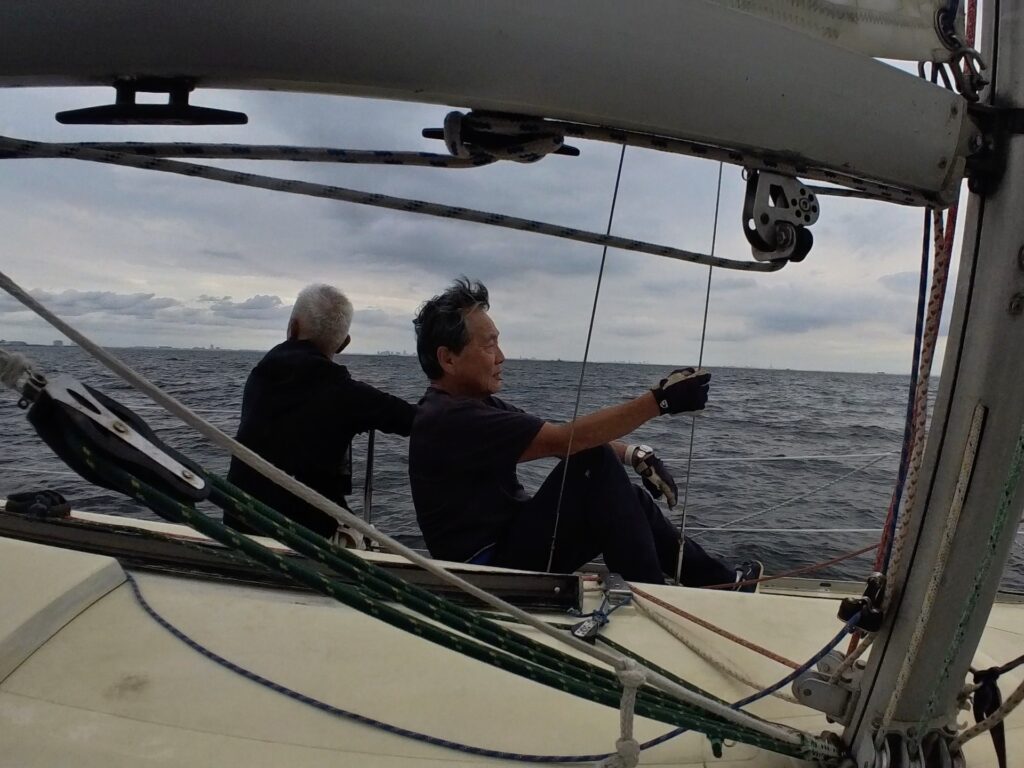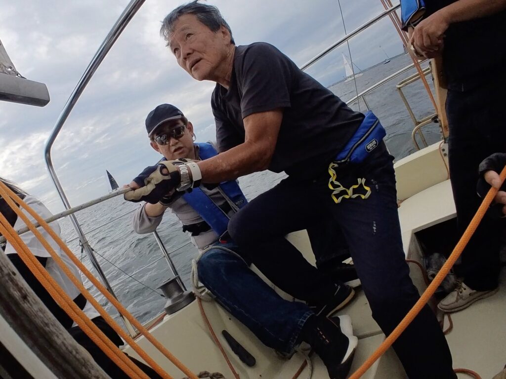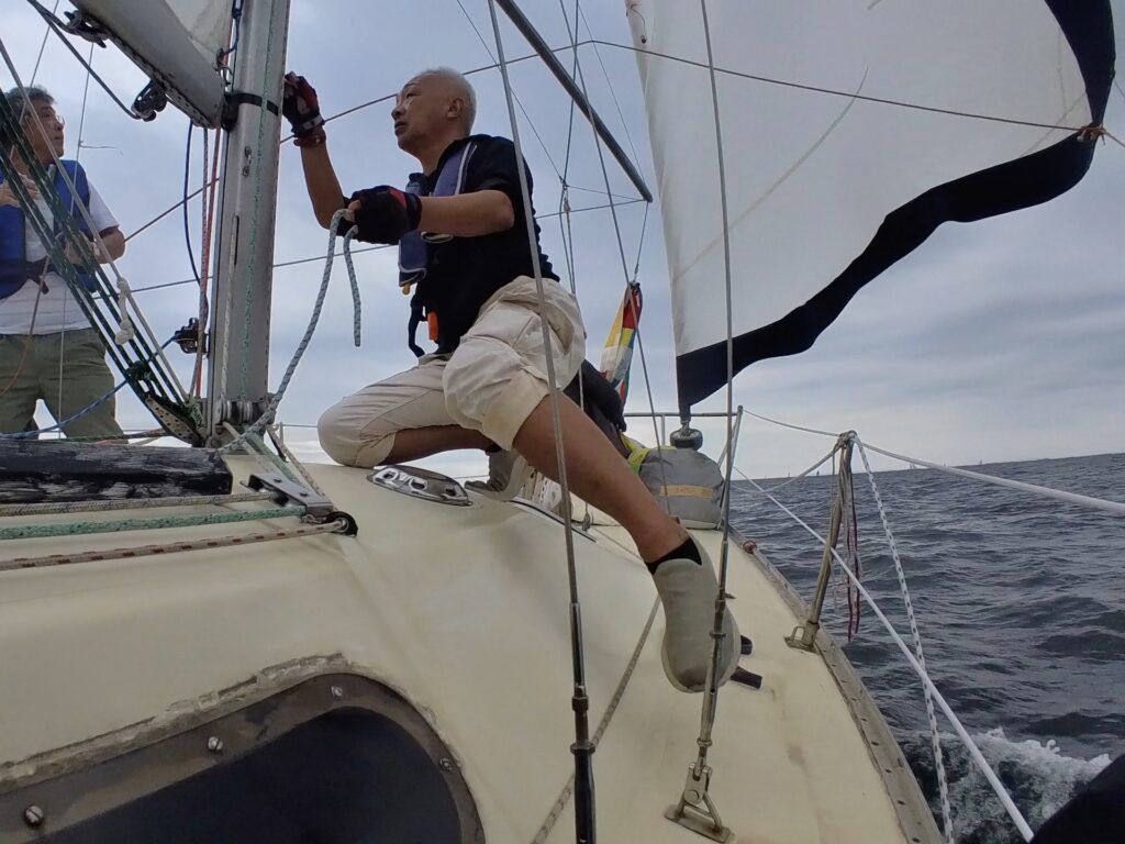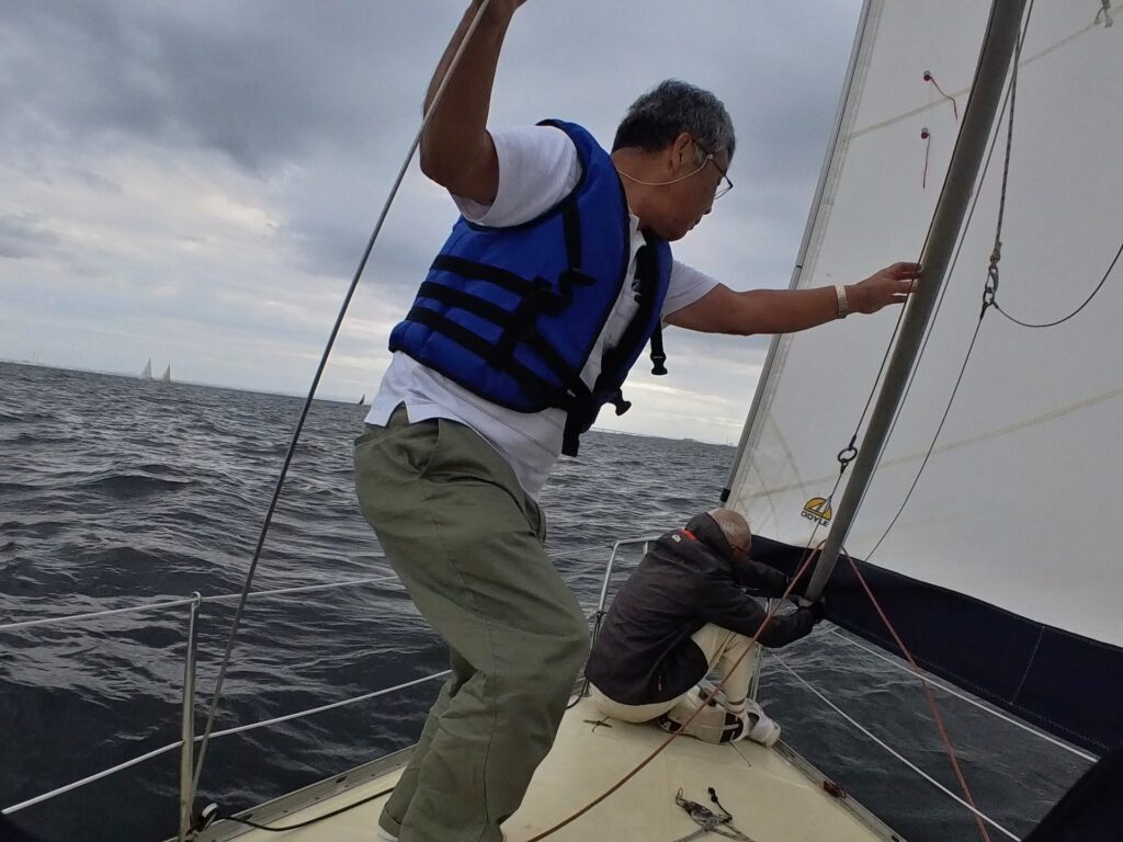 福島さんは、ジブセールのトリムを細かく指示されていて、ミジップにいた私は、あほうどりの大きな150%ジブを目の前で確認することができて勉強になった。
