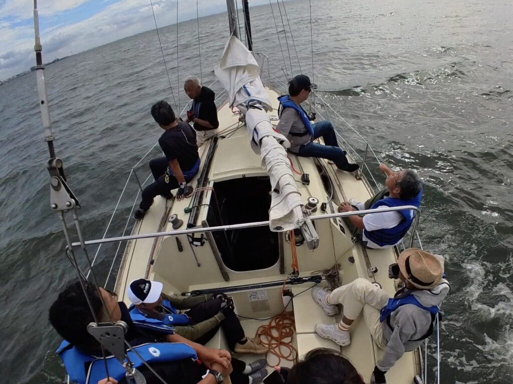 スタートから第一マークまでの片道の1レグに1時間ほどかかるセミロングに、古庄さんは、今度からセミロングのときはもう1本ビール持ってきていいですかと退屈なご様子。