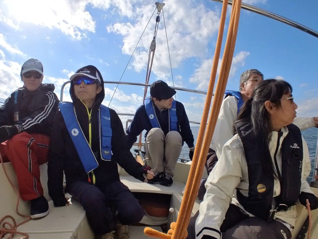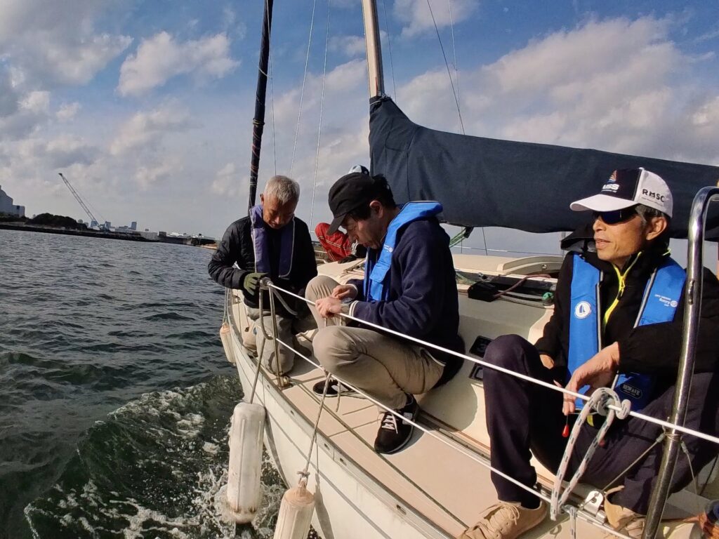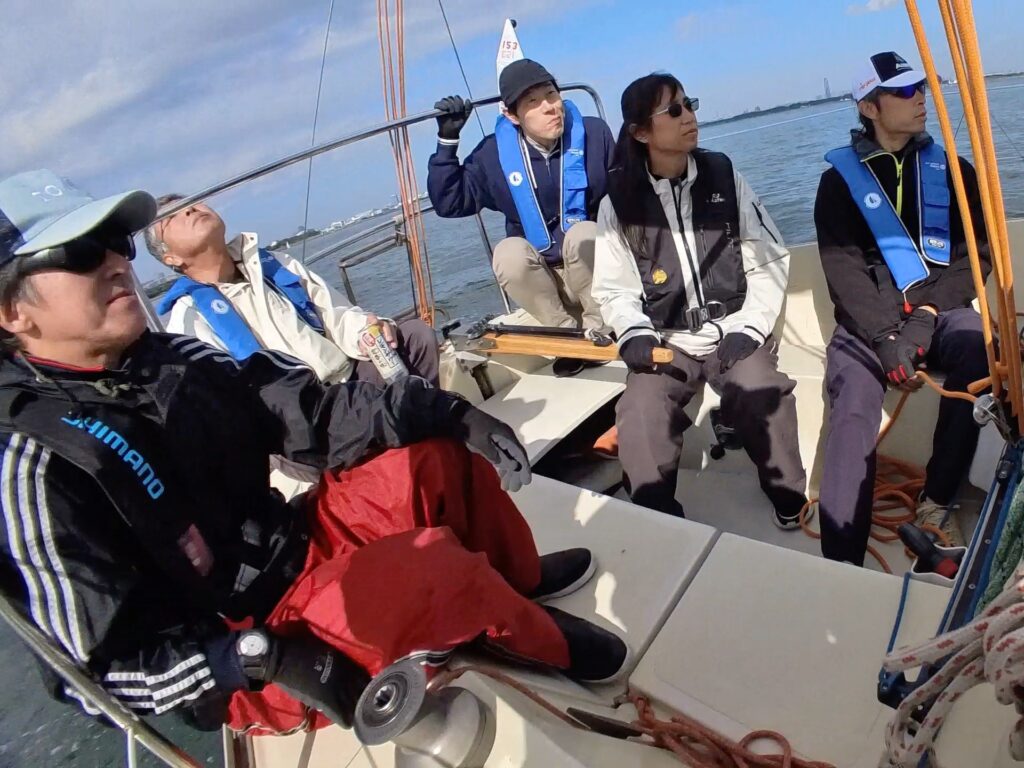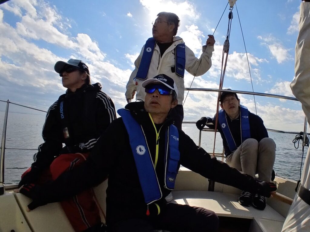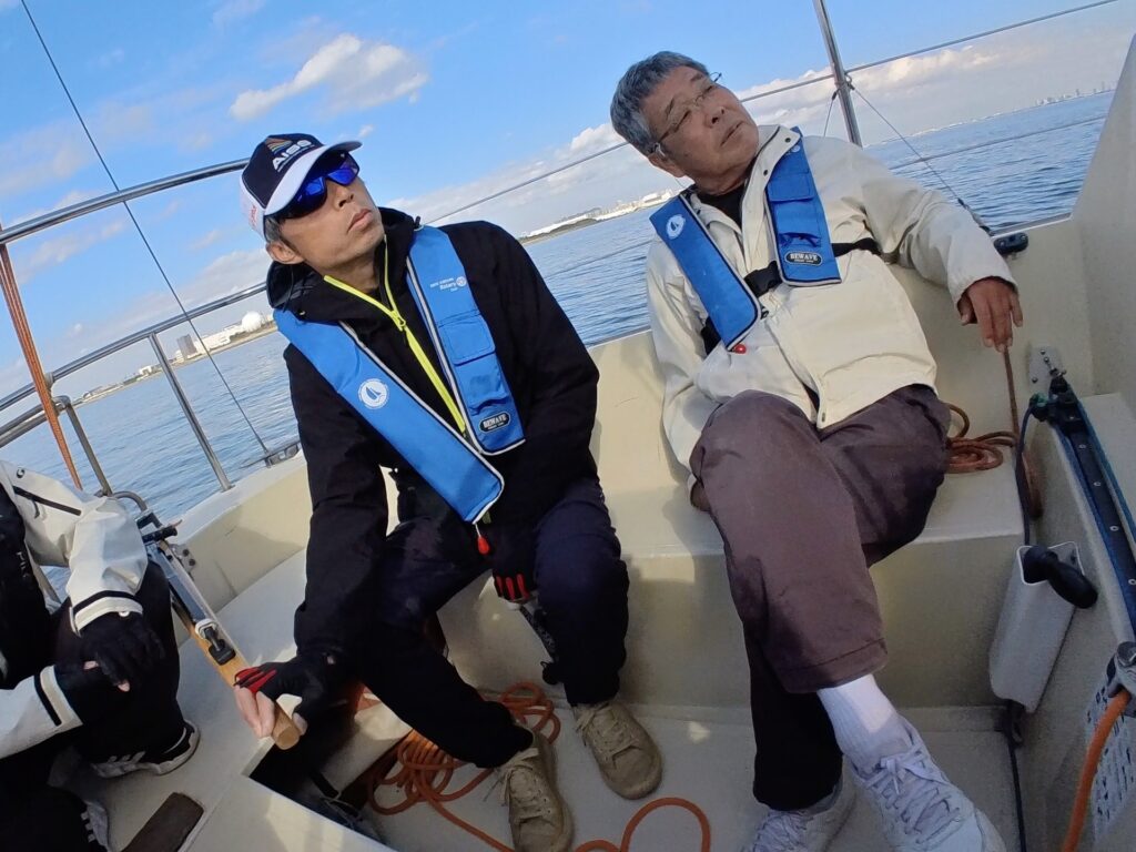そえださんは、何かとみんなにヨットやセーリングの基礎を伝え、山口さんは、フローティングクルー(オールラウンダー)として何でもみんなのサポートを身軽にこなされる。