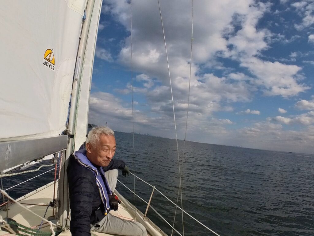 今回で3、4回目のMさんは、これまで20ノット近いかそれ以上のときのセーリング体験しかなく、こんなに穏やかなセーリングは初めてだったとのこと。ヨットはたいらなときもあります。