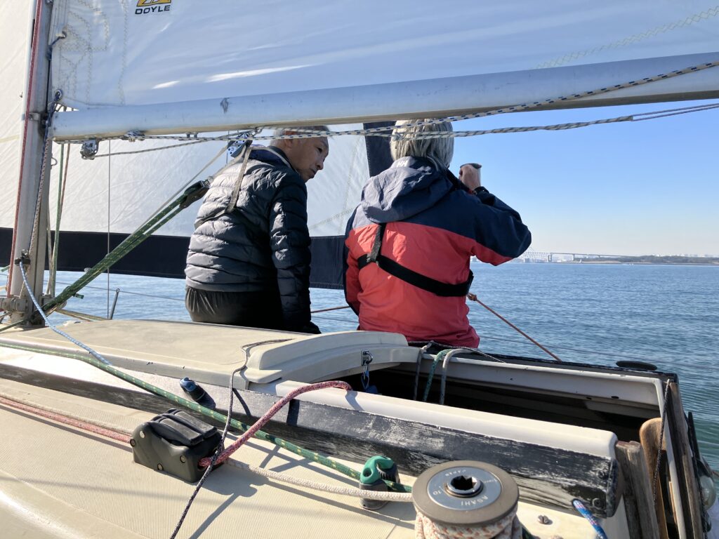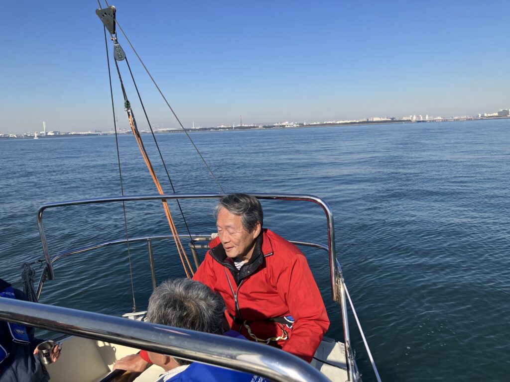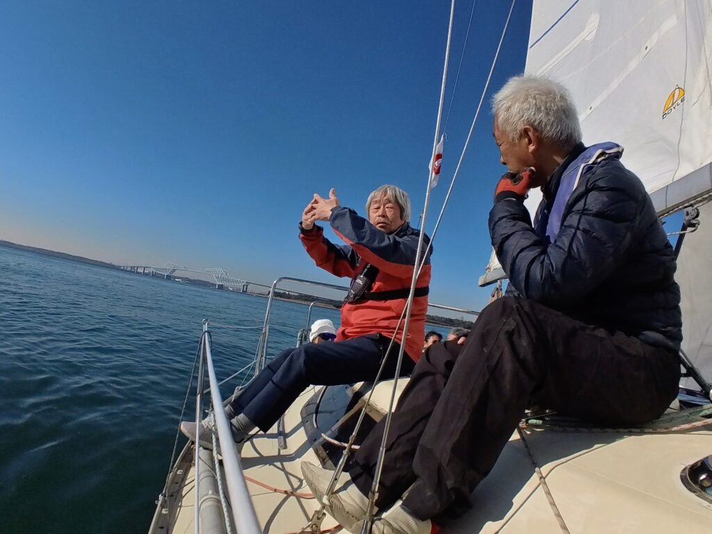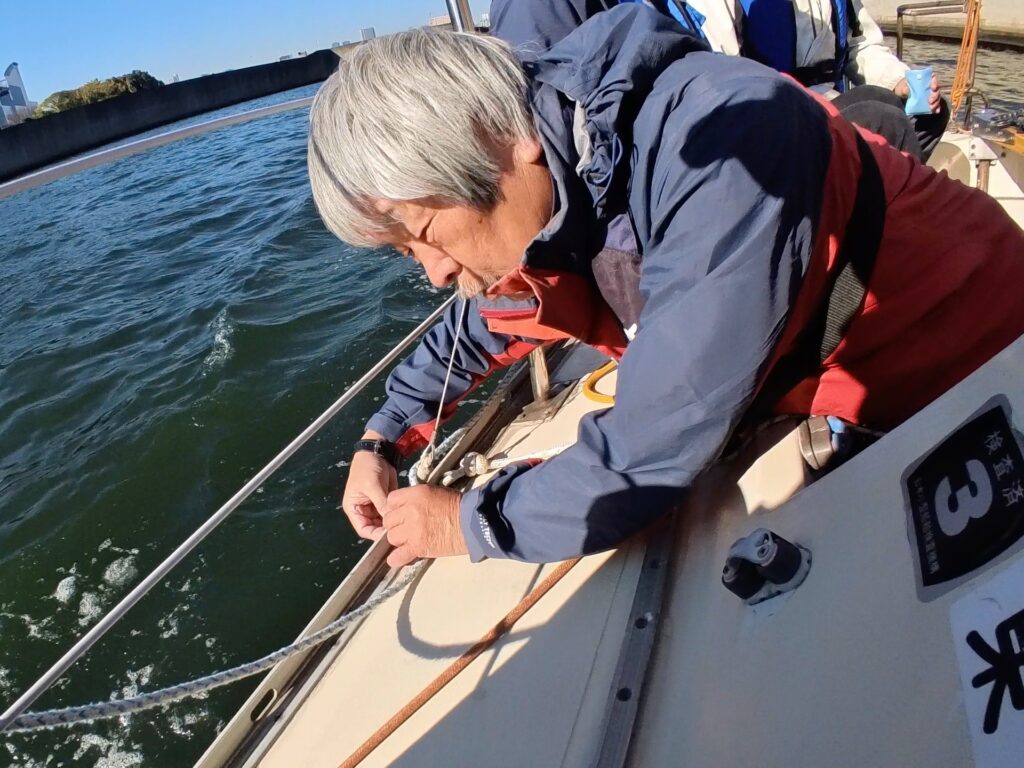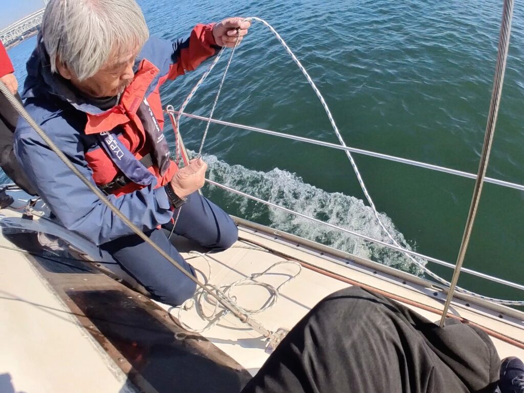 とにかく、このツイーカーをつけるためには、ちょっとヨットの上を、このロープが使えるようにするために改造する必要があり、セーリングしながら、安西さんがセットアップをしてくださりました。