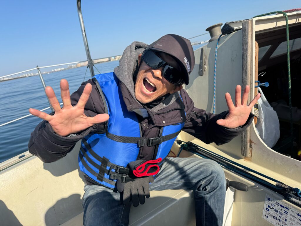 右舷側には水田さんに隣の船にぶつかりそうになった場合におさえてもらう役割を、スタンもやいはそえださん、バウもやいは私がもって着艇。玉木さんの見事なハンドリングとアクセルワークにより、もはやうまく動かないあほうどりを、桟橋ぎりぎりまでよせてもらい、あとはちょっとポンツーンまでジャンプが必要でしたが安全な範囲だったのでこれでキープ。