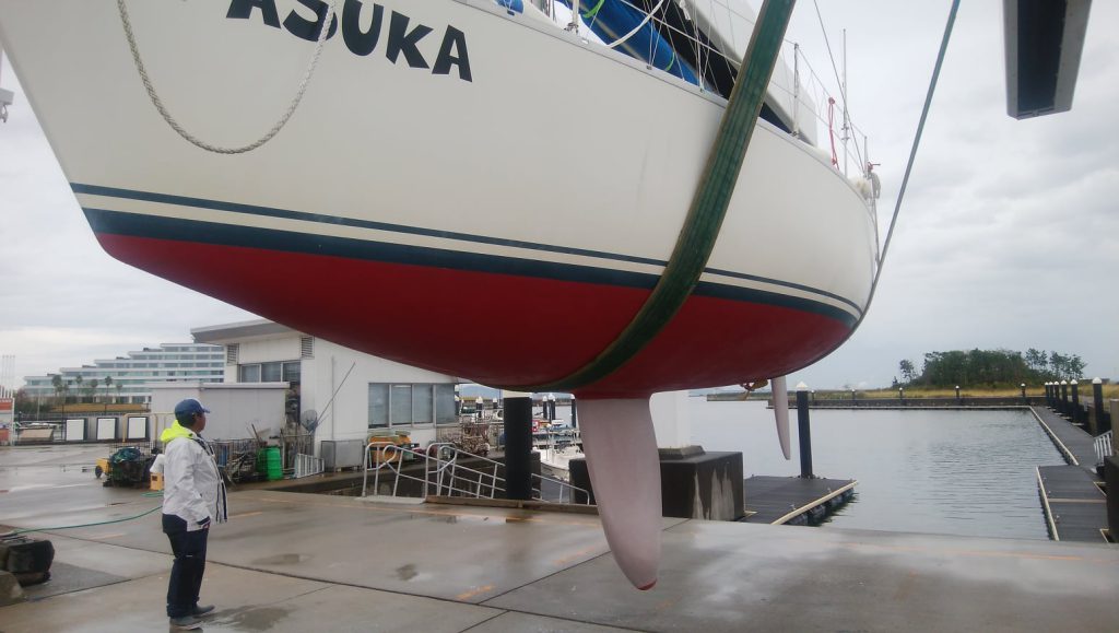 - 作業内容→船底塗装の半分、ペラのコーティング剤塗布、ハルの水垢取り、係留ロープの貝除去