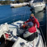 近場でメインセールとエンジンの機帆走でタック、ジャイブ練習。ジブは準備したが使わず。