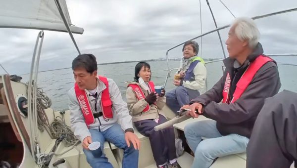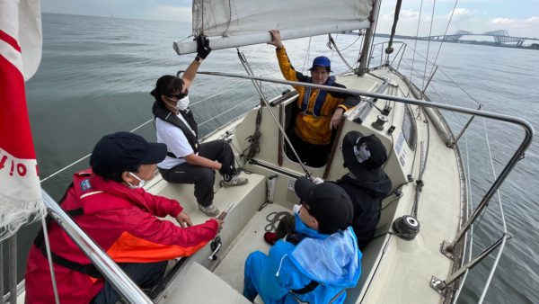 アランさんをスキッパー、トリマーを飯塚さん、メインシートを大塚が担当し、秋山さん、安西さん、中尾さん指導の下みっちりと練習を行った。