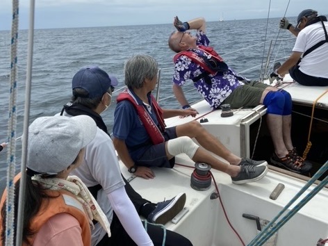 3回目となるど新人のブラインド大島さん、金子のために設けていただいた練習日は、残念ながら雨降りとこの荒天続きによる大量のゴミ、流木、魚の死体に阻まれ、マリーナから出てすぐに引き返し、桟橋に寄せる練習や、ルミナス乗船時の想定タック練習などを終えてクローズとなりました。