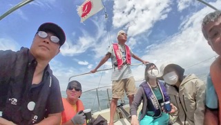 セーリングそのものは 、風が強く吹いたり 急に止んだり 忙しくありましたが、 皆さんベテランの領域で安全かつ楽しく できました。 特にブラインドの小倉さんは 風向きを肌で感じたり、 セールの音を聞き分けたりで 体験の市川さんの ティラーを 的確に操船されていました。 その凄さに驚きました。