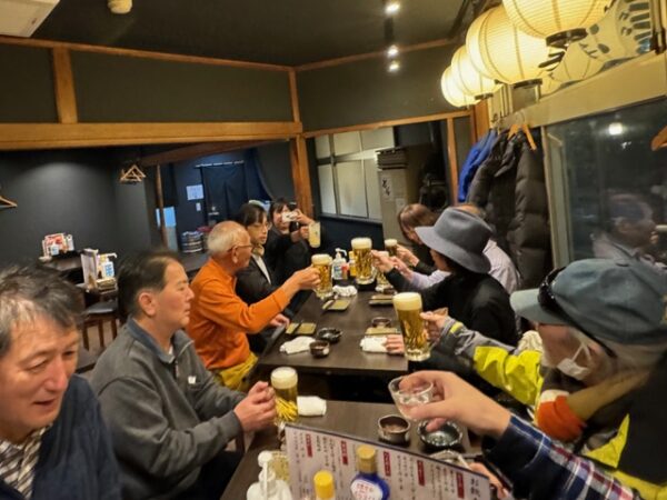 終了後、児玉さんのお知り合いの船に連れて行っていただき、楽しい時間を過ごさせていただきました。佐藤さんが、遠慮なくビールのお代わりを要求していたので、思わず肘で佐藤さんをどんとつついたのですが、もしかしたら佐藤さんは、ぶつかったのかなぐらいにしか思わなかったかもしれません。