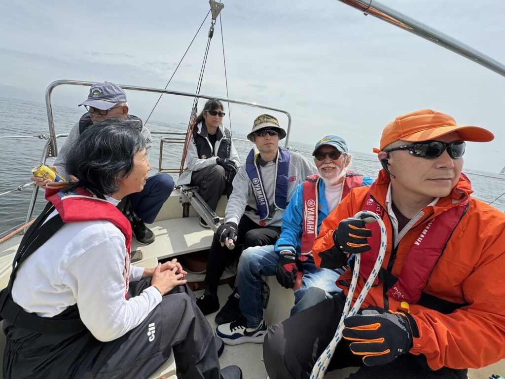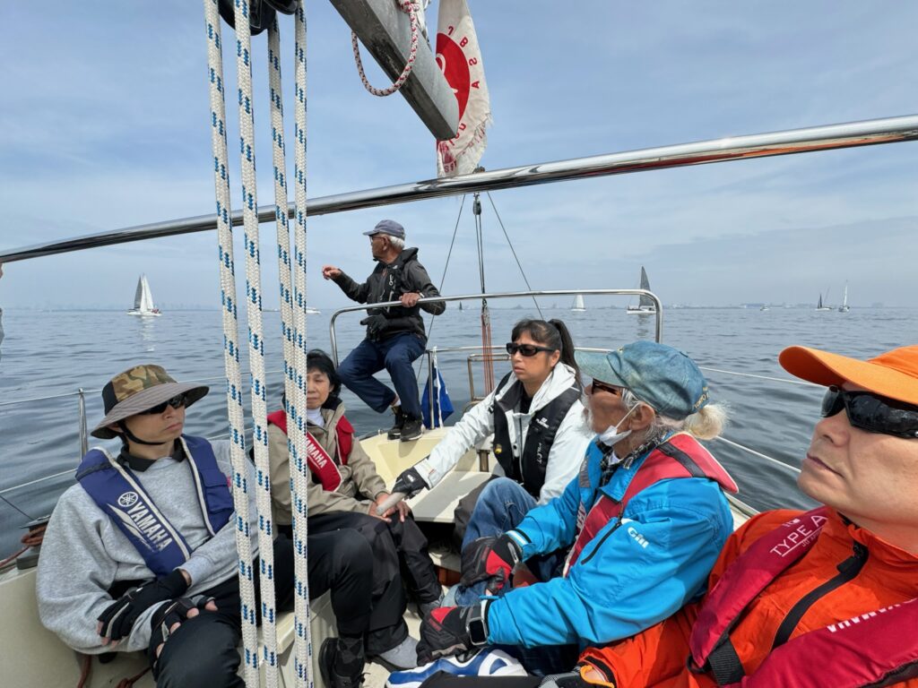 今回は、スペシャルなかたが体験で参加してくださった。教えていただきたいことがたくさんあったのだが、シャイな私?はお声がけがなかなかできない。バウで、とのがいちさんとお話ししている中に入りたかったが、黙々とレース海面まで操せん。