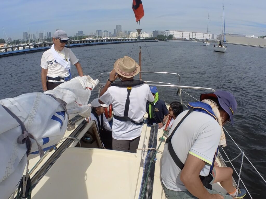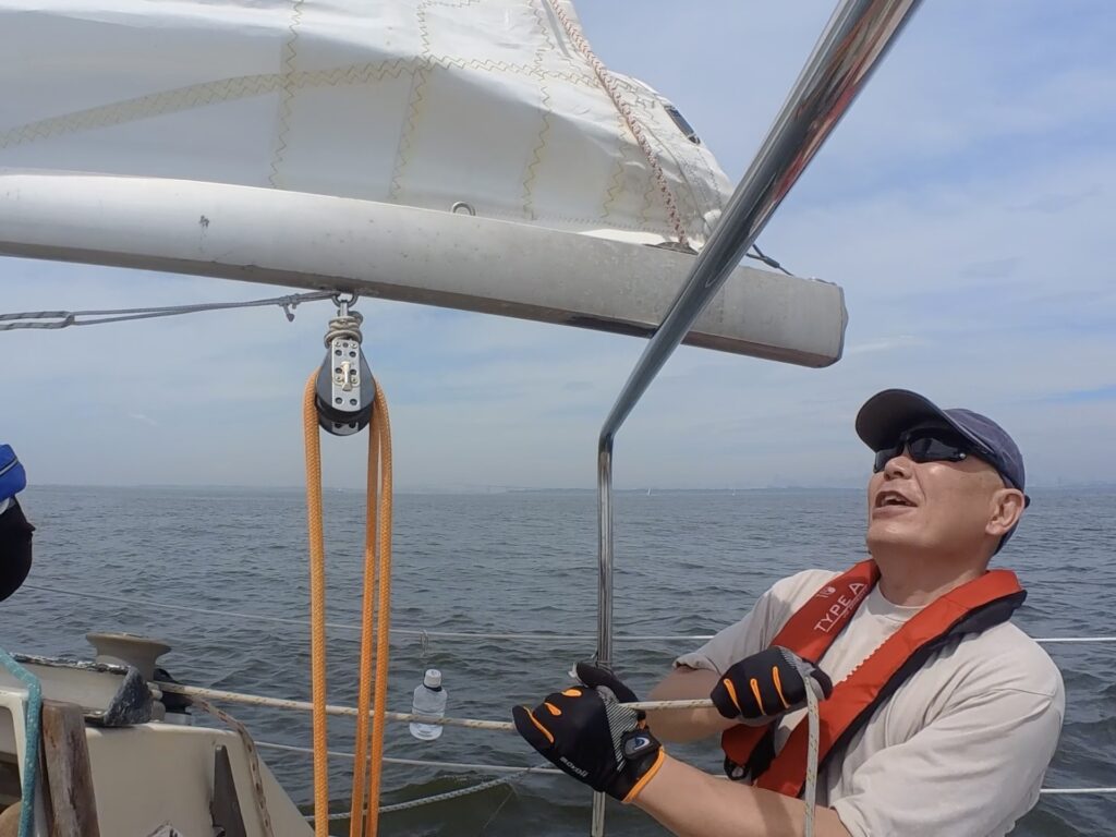 よっしゃと回航してからジブをたたんでスピン用意、膨らませるのに一苦労ありましたが走り始めたら恐ろしいスピードで走り始め、ザッパザッパと波を切る音がスピード感ありすぎてめっさ怖かった・・・。