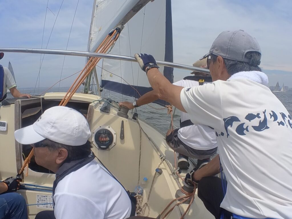 進めどすすめど上マークは見えず、レース艇船団の動向から想定して延々クローズドホールド、2時間を超えた頃やっと見えてきました上マーク!