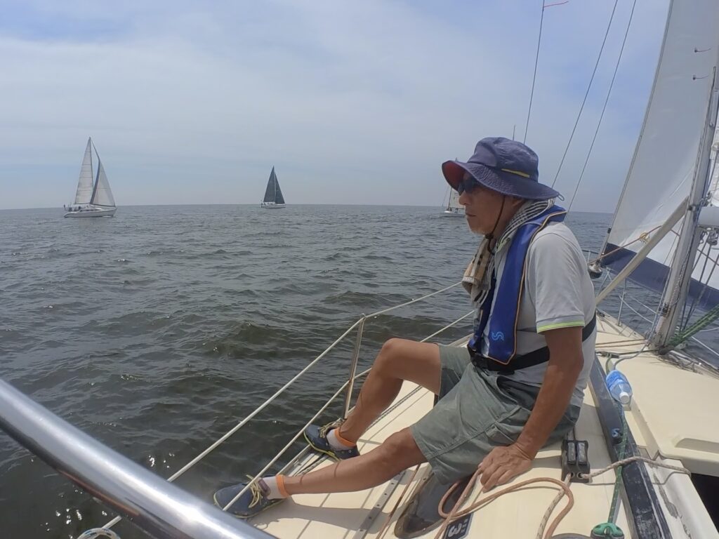 風は軽風。長い長いレースの始まり。しばらくしてタック。そしてまたタック。