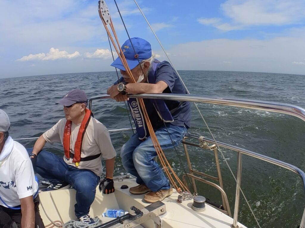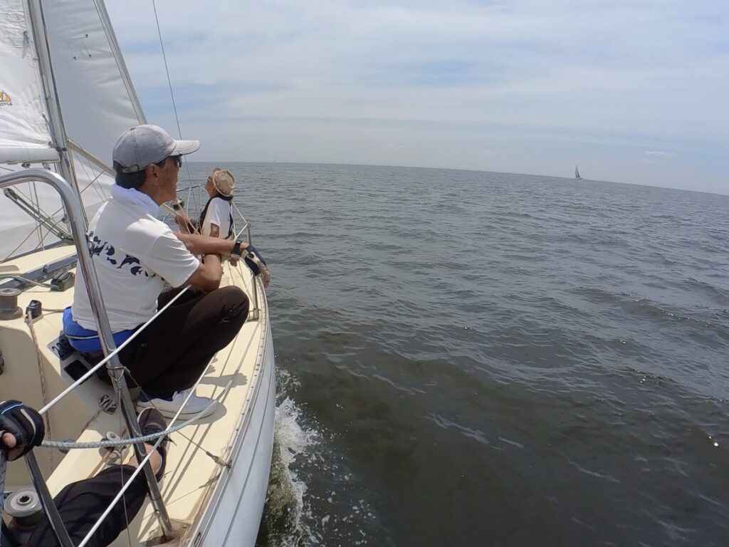 その後は左海面に賭けにでる。一時間経過しても上マークは見えない。ひたすらクローズホールドで走り続けていたあほうどりは、本線をかわしてタック。